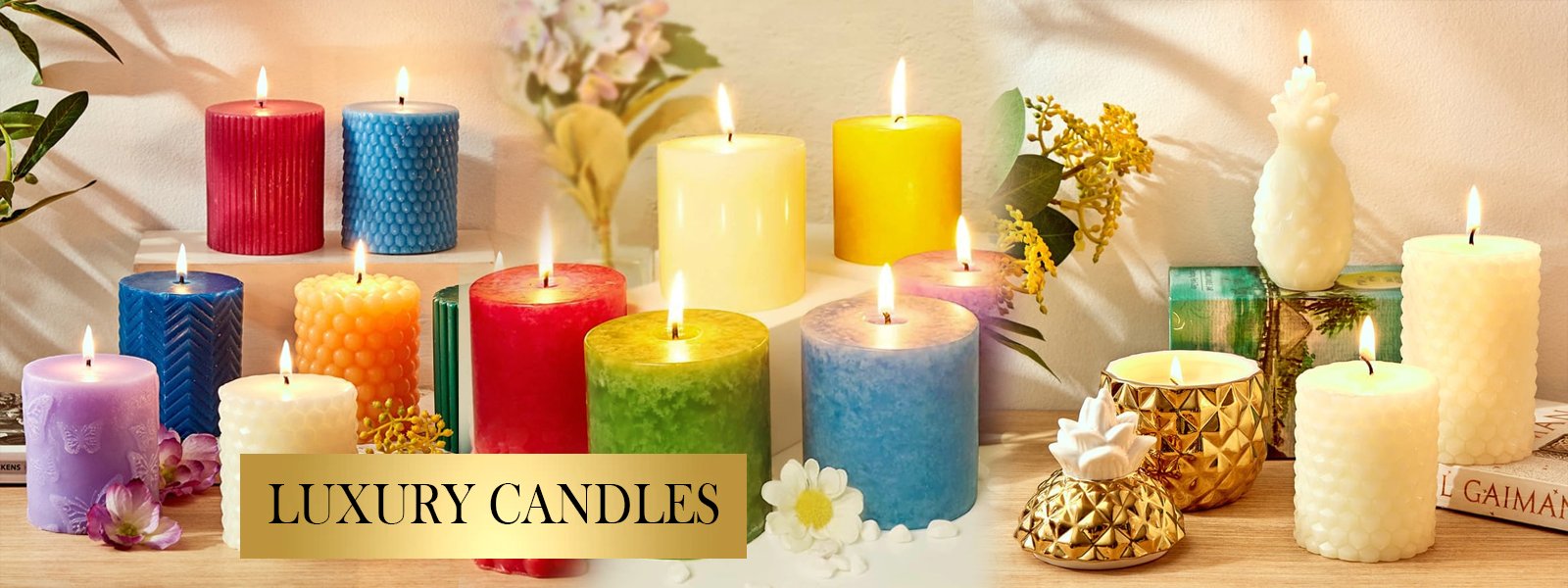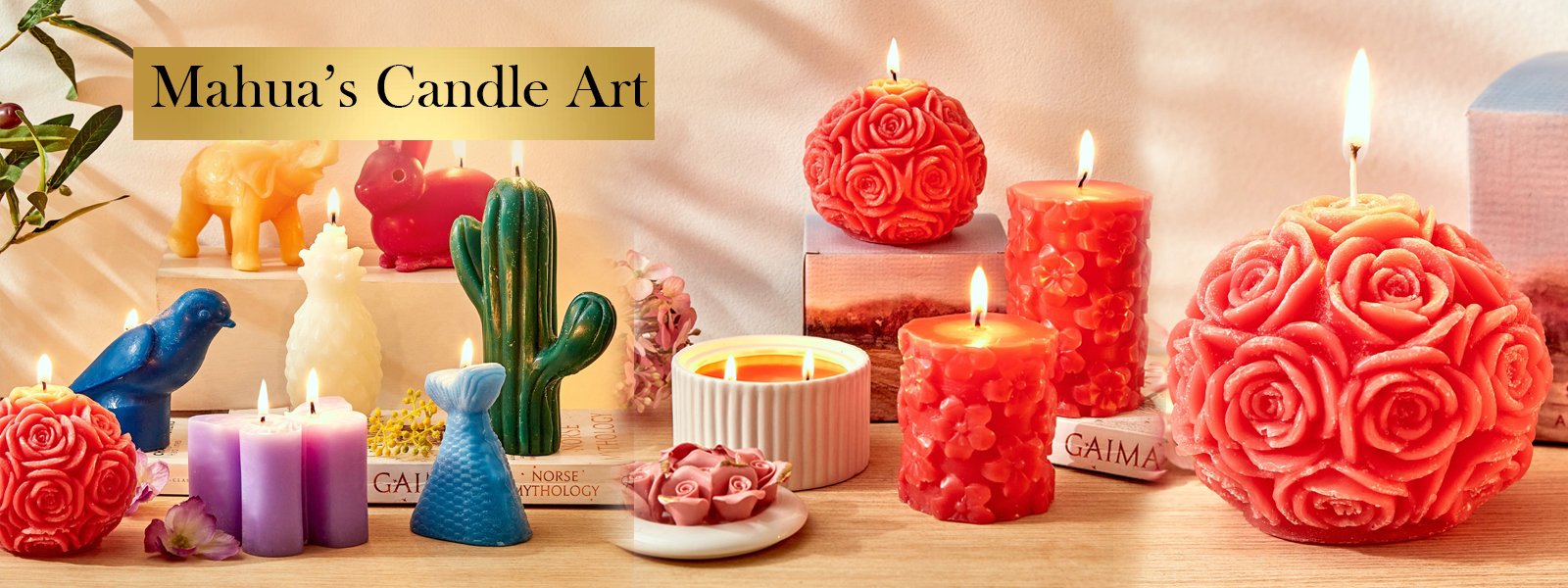 • Beautifully crafted wax candles in unique shapes and colors